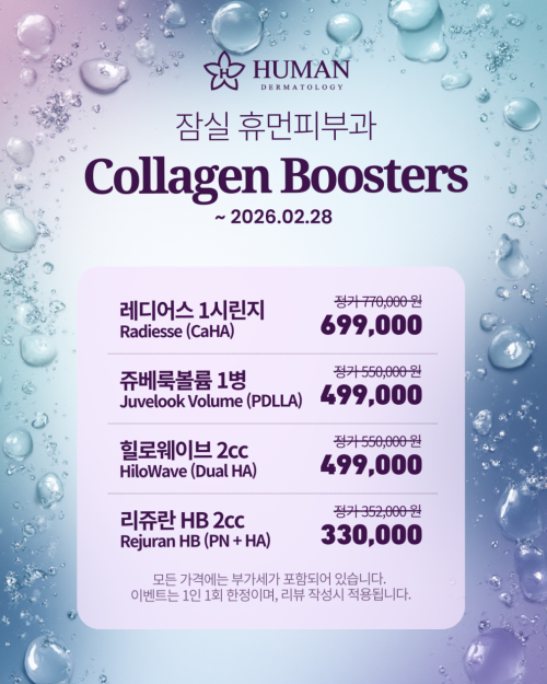 공지사항 잠실휴먼피부과 콜라겐부스터 이벤트 (~2026.2.28)